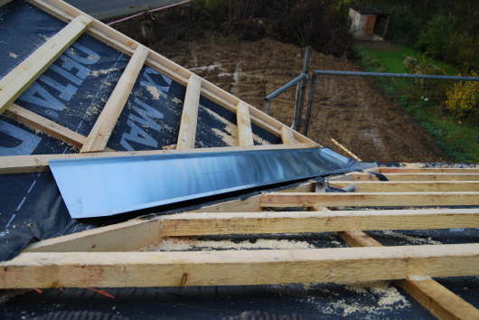 Sieht gut aus. Ein Kehlblech aus TitanZink.