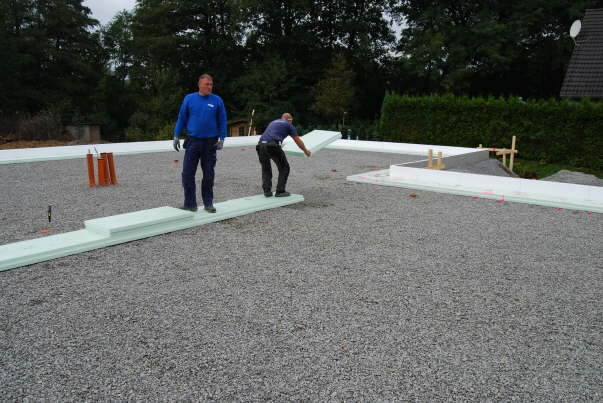 Die Trennwand zwischen den unteren Wohnungen wird mit druckfesten Elementen ausgelegt.