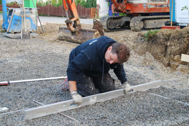 Alles wird akurat abgezogen. Tom leistet tolle Arbeit. Leider wurde uns nicht mitgeteilt, welche Splitkörnung zu verwenden ist. Daher ist der Split etwas grob. Ist also etwas schwieriger abzuziehen.