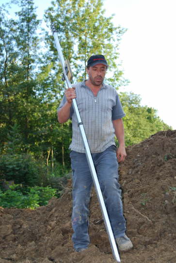 Der Virtuose mit dem Bagger und dem Nivelliergerät. Für jede Frage, die mit dem Bauen zu tun hat.