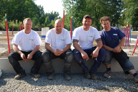 Markus, Dag, Frank und Tom, die Experten für Styropor, Wasserleitungen, Stahl und Beton.