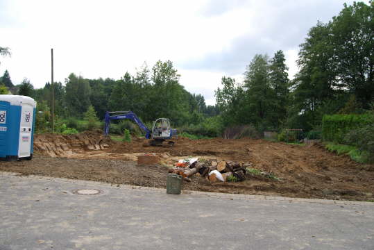 Die Baugrube von der Straße aus.