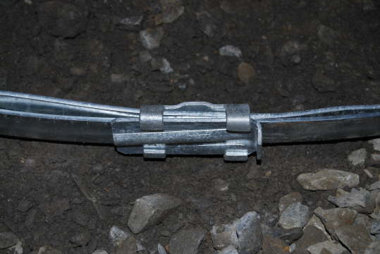 Um eine gute Verbindung zwischen den einzelnen Teilstücken zu erhalten, werden diese mit einem Verbinder zusammengefügt. Mit einem Hammer geht das zu zweit recht einfach.