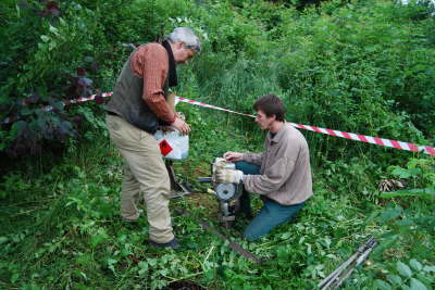 Zwischendurch muß die Cobra (Bohrgerät) gefüttert werden. Gemisch ist hier die Lieblingsspeise.