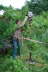 28.06.2008: Damit der Vermesser auch das ganze Grundstück betreten kann und nicht auf den zu bebauenden Teil beschränkt ist, habe ich mit Jasmin heute auch den späteren Gartenteil des Grundstücks gerodet. Mit einem Freischneider und vielen Litern Wasser haben wir den ganzen Unterbewuchs entfernt. Eine Pappel, die von innen schon morsch war, haben wir auch noch entfernt. Da wir aber keine Kettensäge mitgenommen hatten, fingen wir an mit der Bügelsäge und der Axt den Baum zu fällen. Ein freundlicher Nachbar kam vorbei und hat uns den Baum fachgerecht umgelegt. Vielen Dank an den Nachbarn vom Forstbetrieb.