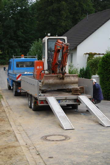 Der kleine Bruder des blauen Baggers wird angeliefert.