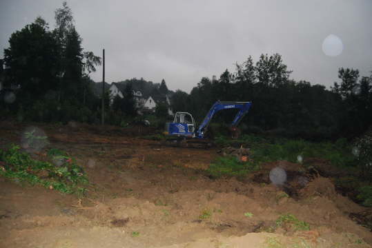 Auch nach Einbruch der Dämmerung wird hier noch gearbeitet. Das Gras muß weg!