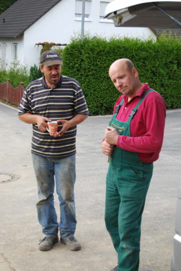 Eine kleine Pause beim Rohre-Verlegen. Jörg und Andreas.